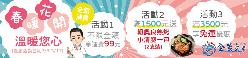 春天悄悄來報到,全晟海產推出運費大優惠來報到囉!!!